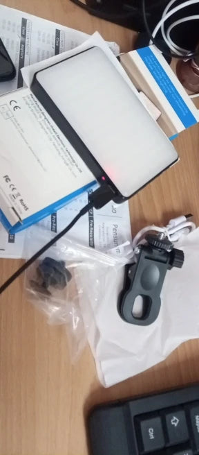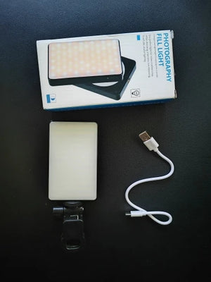 Includes the LED fill light, phone clip, magnet ring, cold shoe adapter, USB data cable, and manual so you can start lighting calls and shoots right away.